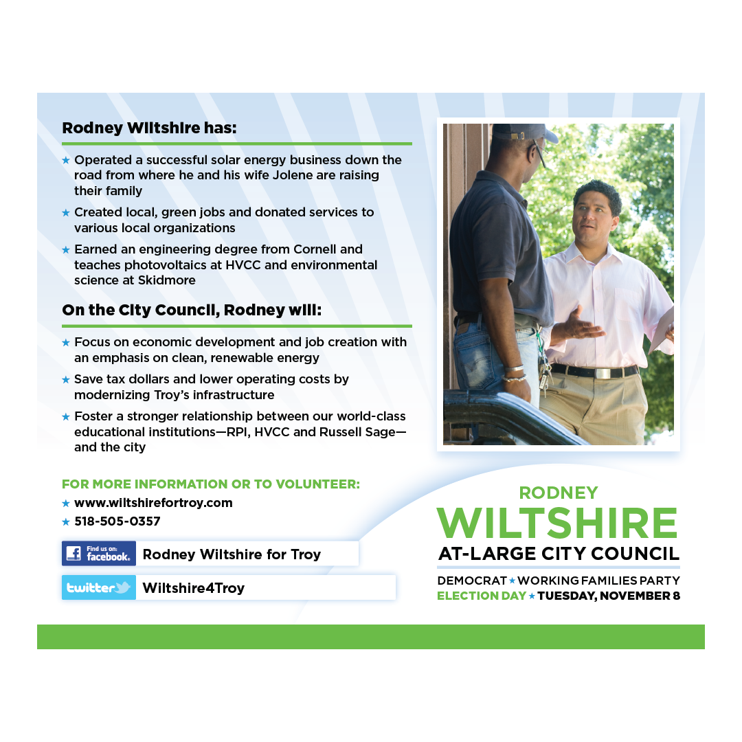 Direct mail for Wiltshire for Troy, New York City Council campaign